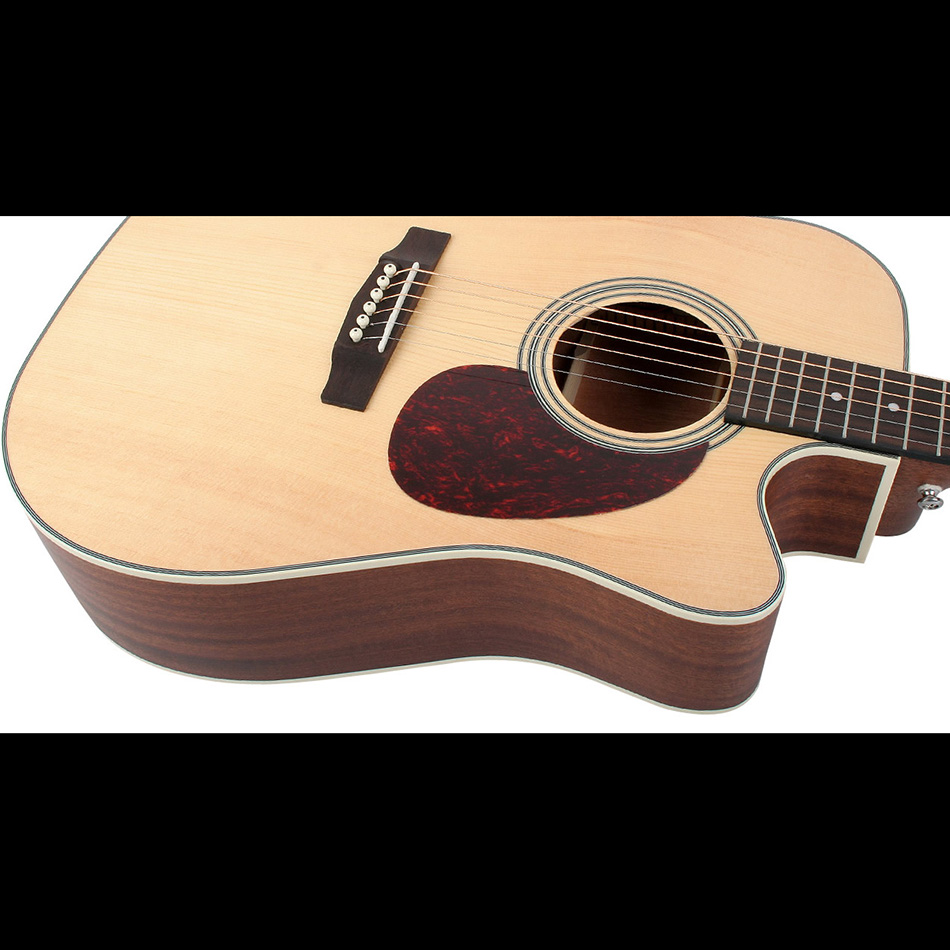 Az MR széria jelképezi a Cortnak azt a törekvését, hogy a legjobb minőségű hagyományos hangszereket készítse, a kiváló mestermunka és a modern jellenzők egyesítésével, mindezt megfizethető áron. Az MR500E tömör fenyő fedlappal, mahagóni hát- és oldallapokkal rendelkezik, a koptató ovangkolból készült. A klasszikus dreadnought testen velencei cutaway könnyíti meg a magasabb bundokhoz való hozzáférést, a Cort CE304T elektronika közvetíti az MR természetes akusztikus hangzását az erősítő rendszerbe, élő fellépések és stúdiófelvételek alkalmával egyaránt.
