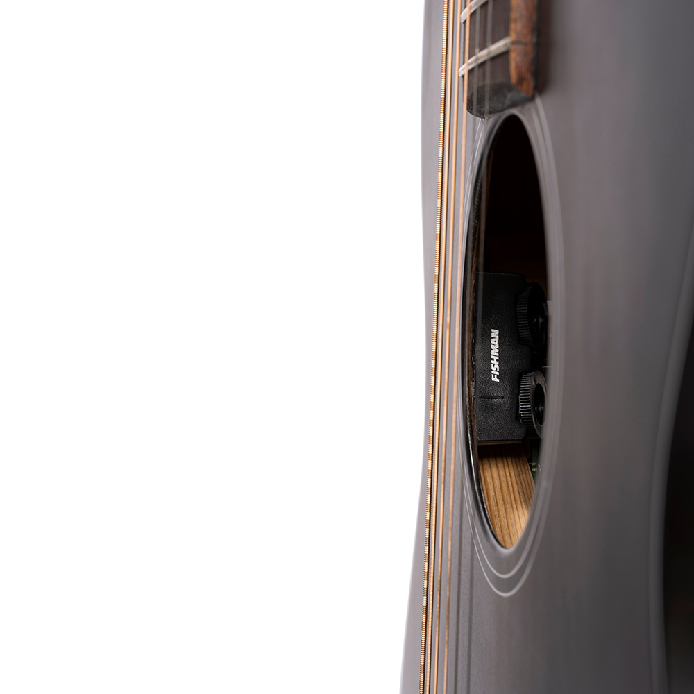 Cort akusztikus gitár Fishman elektronikával, All solid, deluxe félkemény tokkal, fenyő, áttetsző fekete