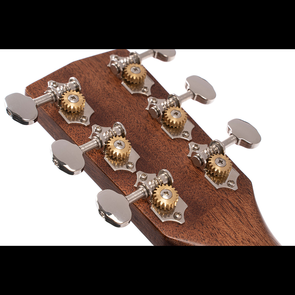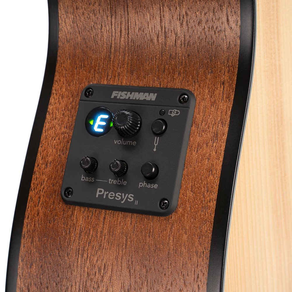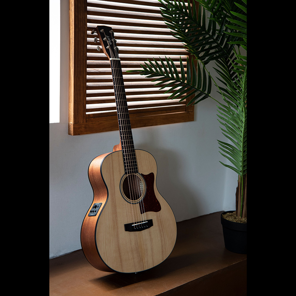 A Little CJ modell 3⁄4-es jumbo testbe született, most már tömör Adirondack fenyő fedlappal is kapható. Ez a faanyag erősebb és tömörebb, mint a Sitka fenyő, emellett széles és artikulált hangot produkál nagy hangerőnél is. Mahagóni hát és oldal, mahagóni nyak, Ovangkol fogólap, 597 mm-es menzúra hossz, valamint Fishman® Presys II elektronika jellemzi. A test egyedi domborított háta nem csak kényelmesebbé teszi a játékot, hanem teljesebb és tisztább hangzást is ad. A V-alakú nyakprofil a kisebb kezűeknek is megkönnyíti a játékot. Ezeket a klasszikus és prémium funkciókat egy kompakt csomagba gyűjtöttük, hogy a kisebb testfelépítésű gitárosok számára is könnyen játszható legyen ez a rendkívül könnyedén hordozható gitár.