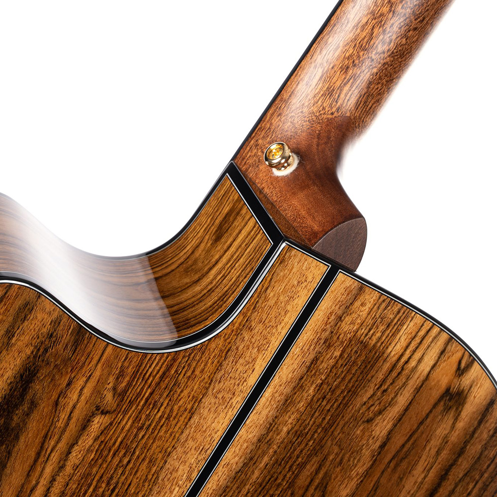 A többszörösen díjazott Gold-A6 egy különleges fejlesztést kapott: gyönyörű és egzotikus bocote hát- és oldallapokat. A bocote híres a csodálatos sárgás-narancsos-sötétbarna, fekete vonalas erezetéről és rózsafához hasonlóan meleg, mély hangjáról. A Gold-A6-Bocote többi tulajdonsága változatlan, mint pl. az Aged-To-Vintage eljárással készült pörkölt fedlap, UV fényben erősített, vékony lakkozás és a Fishman® Flex Blend rendszer - az új Bocote verzió bevezetésével a Gold széria még vonzóbb, mint valaha.