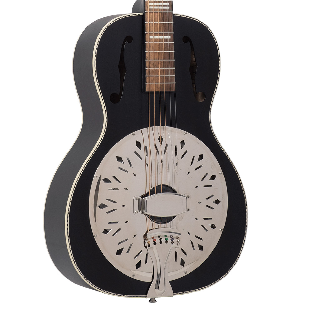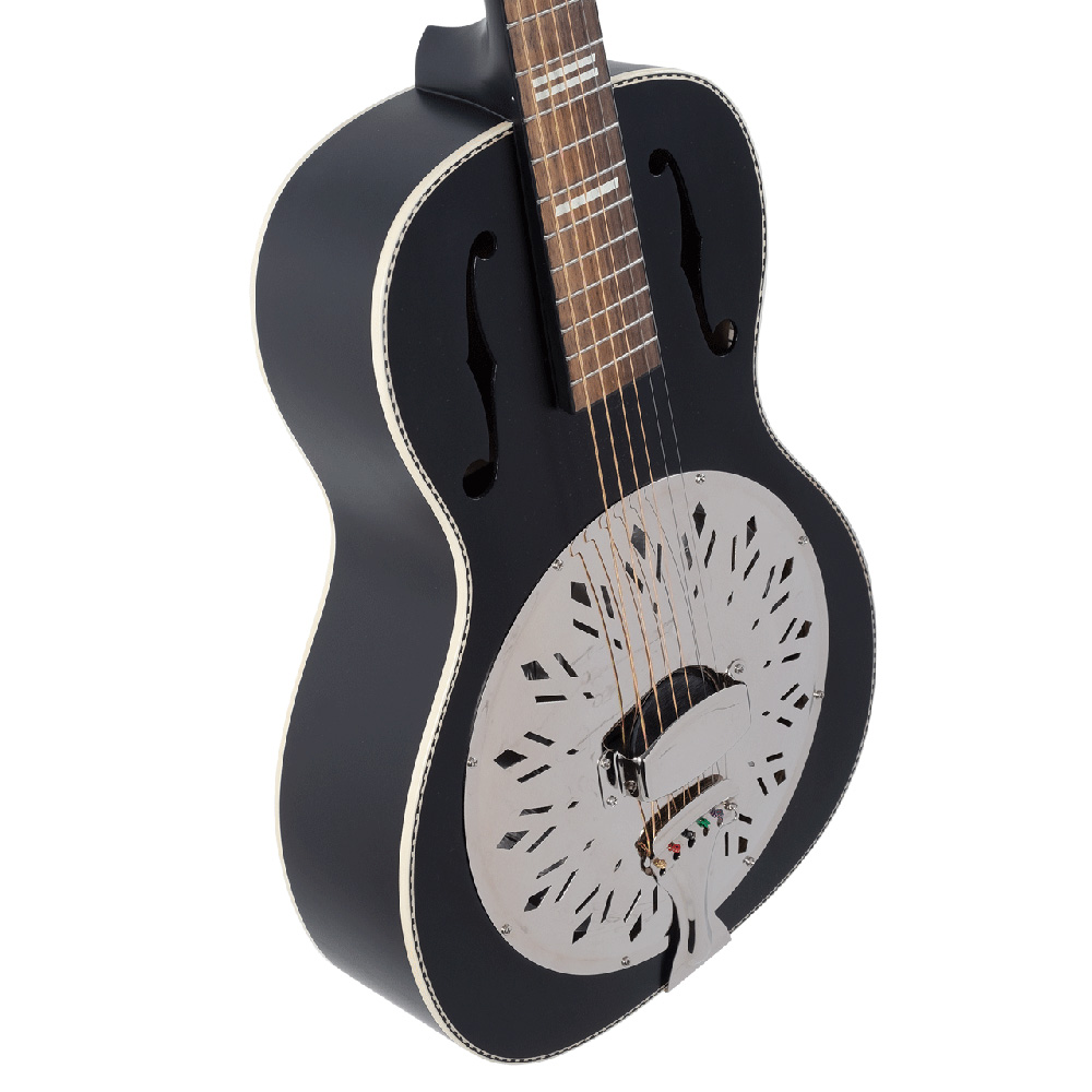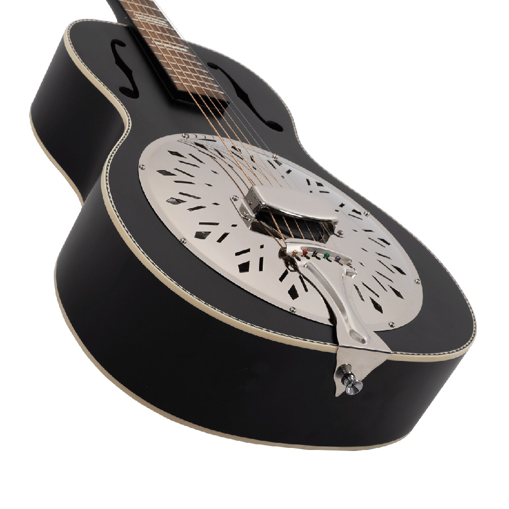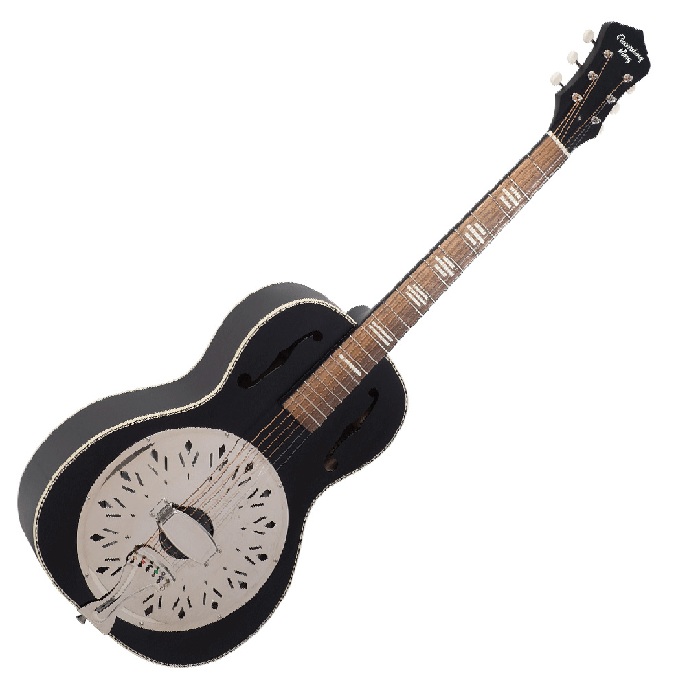A Recording King Dirty 30s széria rezonátoros hangszerei adják azt a klasszikus stílust és vintage rezonátoros hangzást, ami tökéletes az old-school blues és slide zenészek számára. A tradícionális rezonátorhangzást a kézzel készített 9,5" (241 mm) átmérőjű európai rezonátorok biztosítják, a hangüreg kialakítása miatt a hangok szabadon mozoghatnak a gitártesten belül. Az f-lyukak úgy helyezkednek el, hogy optimalizálják a mély és magas frekvenciákat, ahogy elhagyják a testet - ezáltal érjük el a tökéletes, száraz rezonátorhangzást.