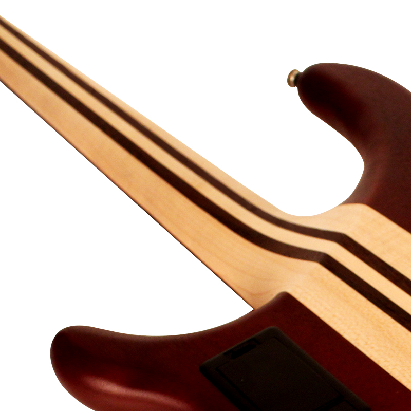Konstrukció: átmenő nyak, dupla cutaway, 5 húros