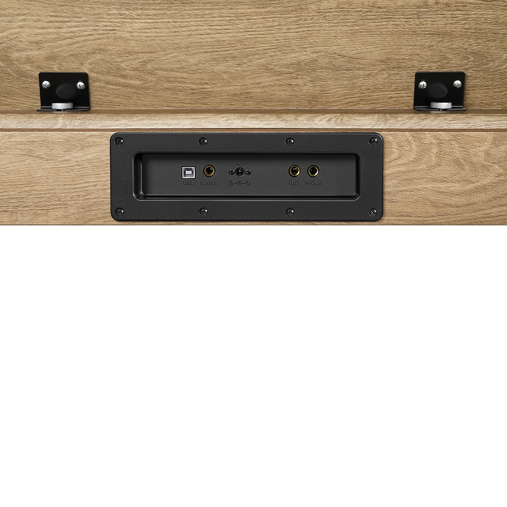 - Csatlakozók: AUX OUT, USB-B, Pedál, Power, Fejhallgató