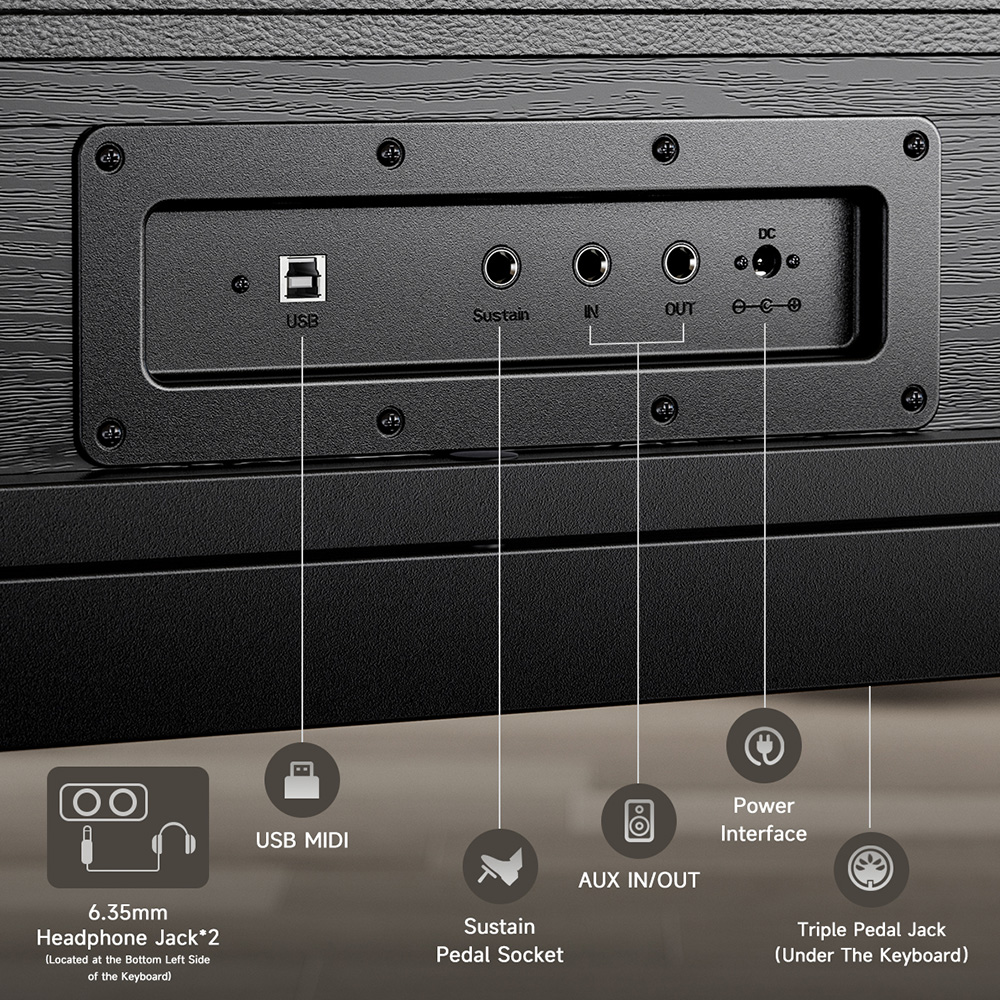 - Csatlakozzon Bluetooth MIDI-n keresztül, hogy hozzáférjen számos oktató alkalmazáshoz, és használja a Bluetooth audiót zenehallgatáshoz vagy hangszóróként.