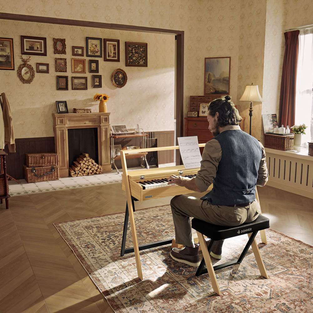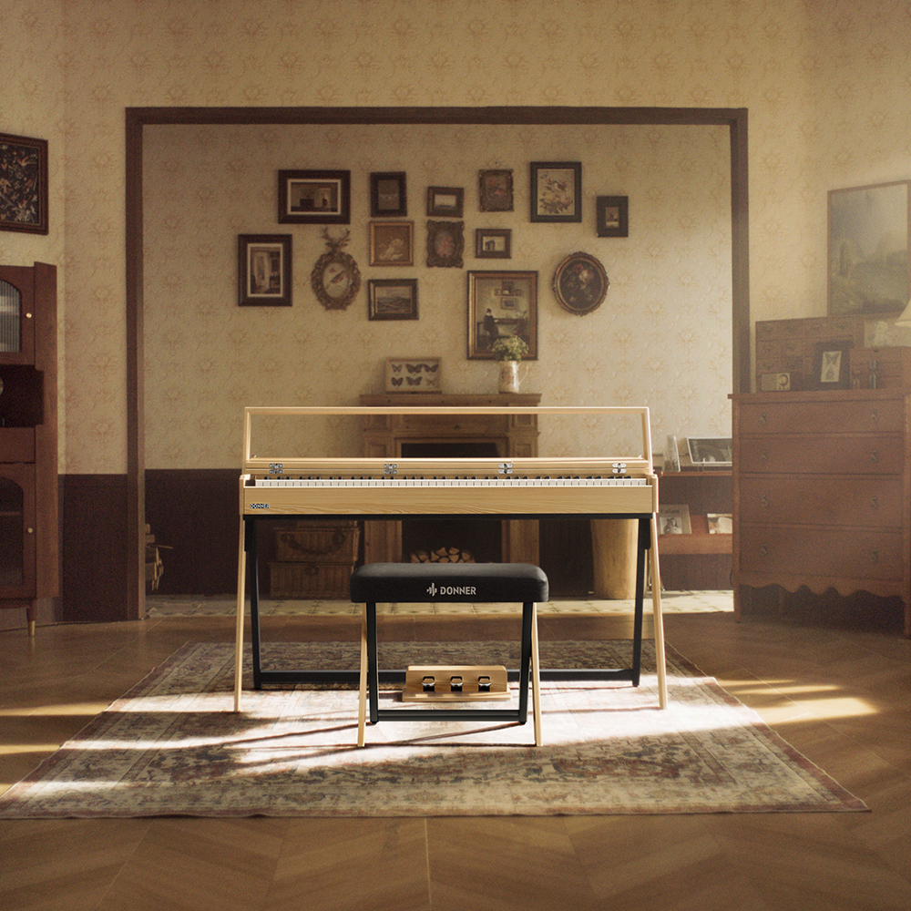 Donner OURA R300 digitális zongora, Donner design, súlyozott, fokozatos kalapácsmechanikás, 88 billentyű, világos faerezet