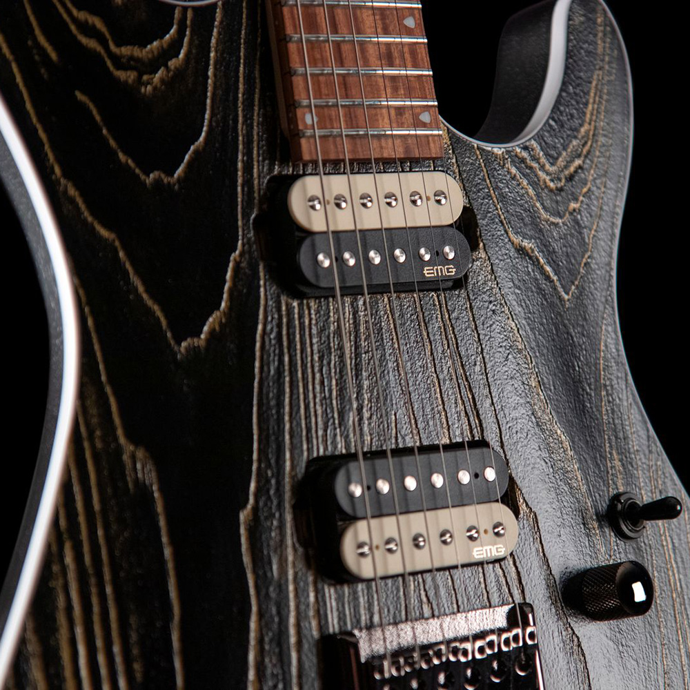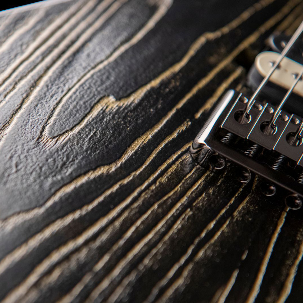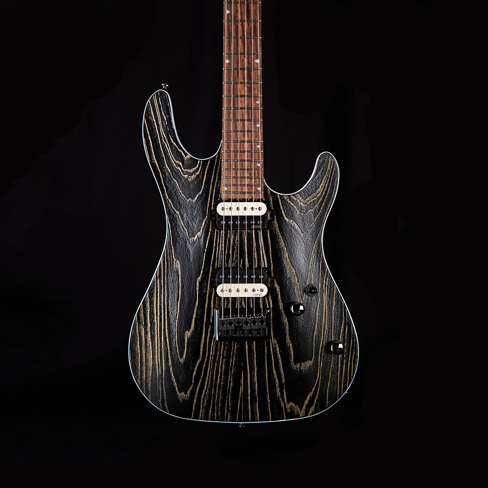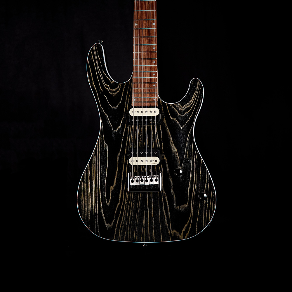 A dark, gótikus megjelenést kedvelő gitárosok számára ajánljuk. A matt fekete kőris erezetét arany illetve vörös színnel emeltük ki és hozzá passzoló színű EMG® RetroActive Super77 humbuckerekkel szereltük, amely a mahagóni test hangzásához tökéletesen illeszkednek.