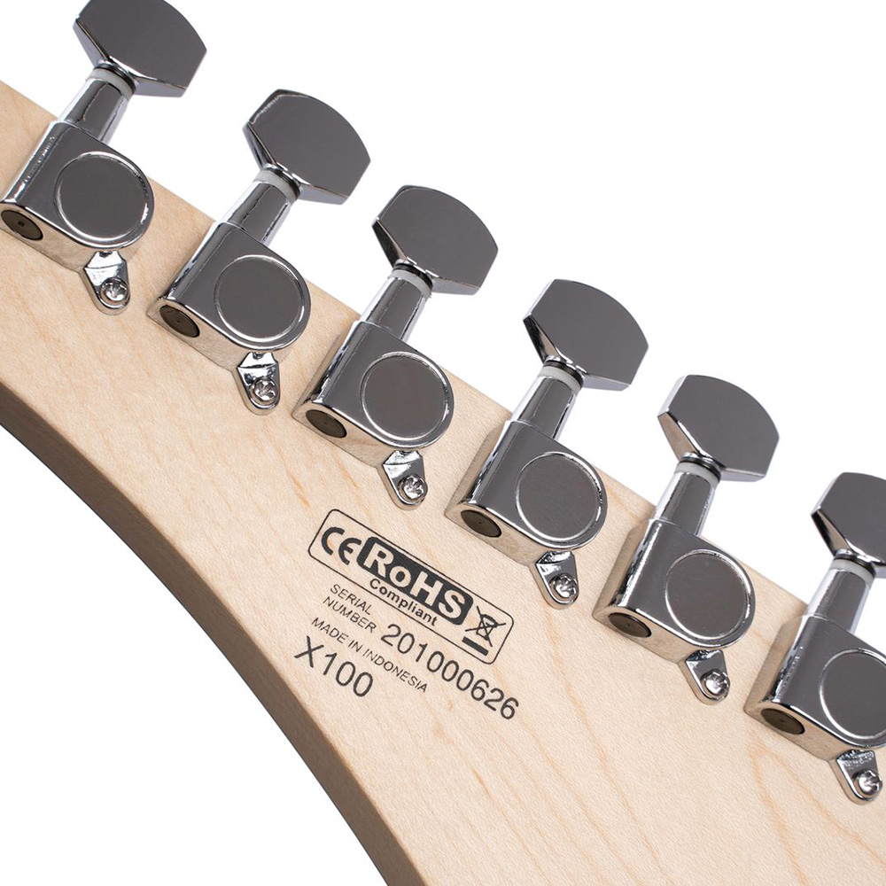 Az új X széria belépő szintű modellje, az X100 ugyanazzal a gyors és könnyed játszhatósággal rendelkezik, mint magasabb kategóriás társai: Meranti test és kemény juhar nyak, jatoba fogólap 400 mm-es rádiusszal, két humbucker hangszedő és egy hatpontos tremolo rendszer.