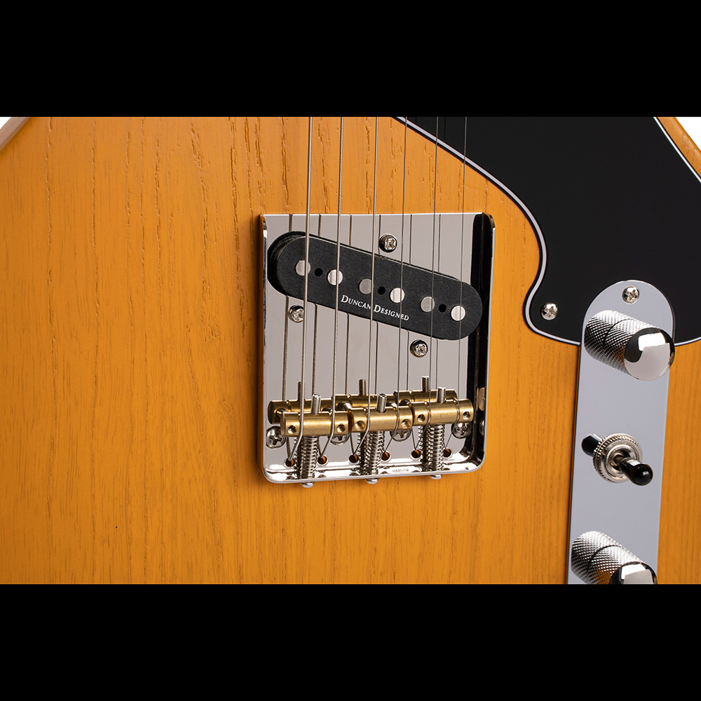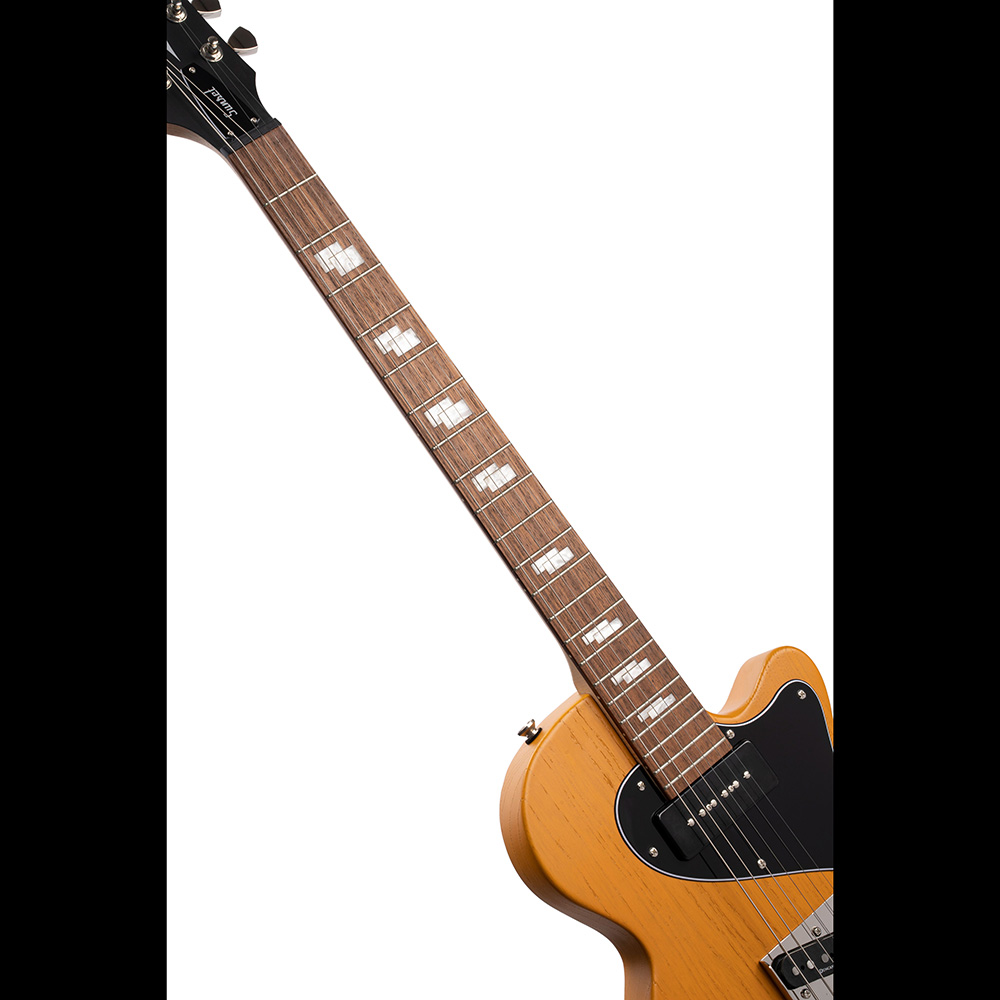 A Sunset TC egy egyedi hibrid dizájn, mely két ikonikus tömörtestű gitárt egyesít. Az orrhangú „twang” híd pick-up és a kövér „P90” soapbar-stílusú nyak pickup kombinációja sokoldalú hangszerré teszi a klasszikus rock, blues, country, pop, funk műfajokat kedvelő gitáros kezében, aki számára fontosak az autentikus zenei gyökerek. Az újragondolt multi-ply black koptatólap és a fogólapon lévő egyedi dupla négyzet berakások eredménye ez az ízig-vérig vintage gitár, mely emellett megfizethető árkategóriát képvisel.