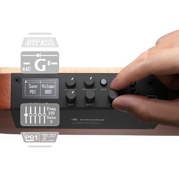 - Tartozékok: hordtáska, monitor fejhallgató, állító imbuszkulcs, USB kábel, kábel, törlőruha, DONNER pánt, pengető