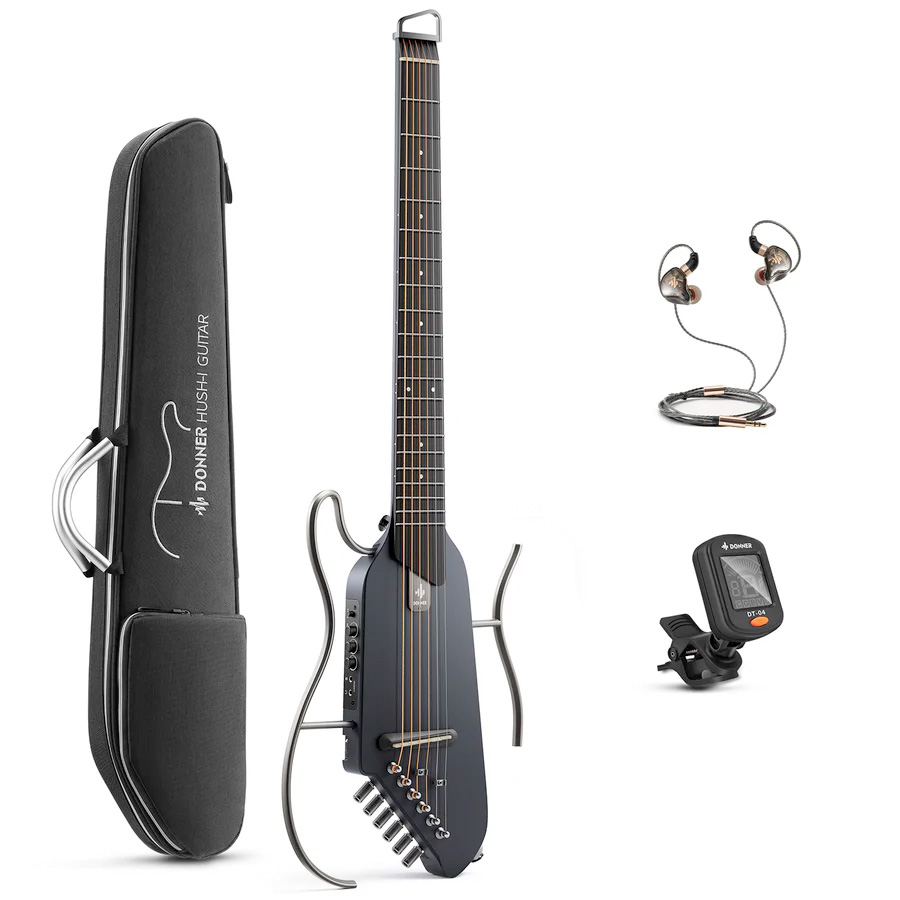 Az ultra-kompakt és pehelykönnyű Donner HUSH-I gitárok tökéletesek utazáshoz és gyakorláshoz. Annak ellenére, hogy egy teljes menzúrájú gitárról van szó, fej nélküli és lecsatolható keretes dizájnja eredményeképpen extrém kompakt és halk. A custom Donner piezo hangszedő és preamp előhozza az ideális hangzást fejhallgatón és hagyományos hangszerkábelen keresztül, miközben a felhasználó számára teljes kontrollt biztosít a Volume, High és Low gombokon keresztül. A Phase gomb pedig hangstabilitást ad élő fellépések közben.