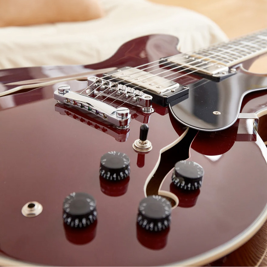 Hűen reprodukálja a 70-es évek hangzását - Ennek a félakusztikus elektromos gitárnak a belső ürege hat polírozáson esett át, a szokásosnál kétszer nagyobb mértékben, a tisztább hangrezonancia érdekében. A fát is kezeltük a tiszta és átlátszó hangzás érdekében, a klasszikus 70-es évek hangzásával, amely gazdag és vastag.