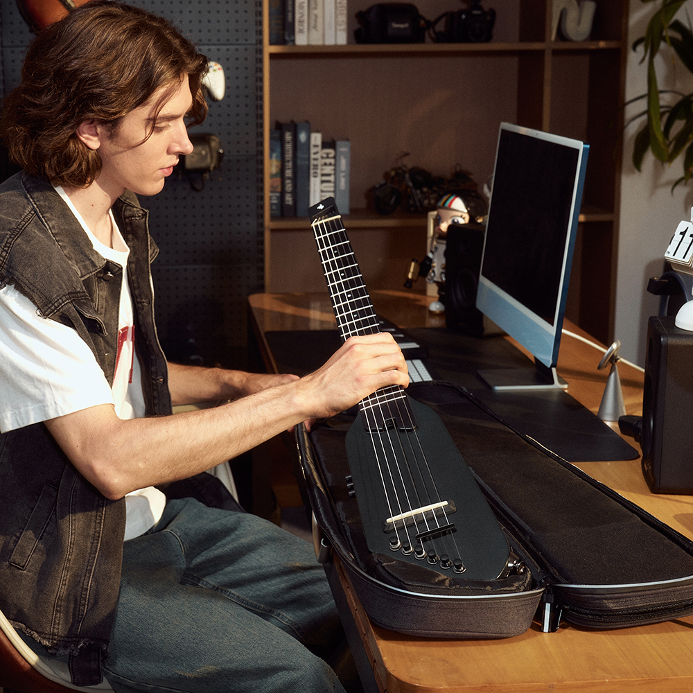 Ultra-hordozható és utazásra kész: A HUSH™ C nylon akusztikus-elektromos klasszikus gitár súlya mindössze 2,0 kg, fej nélküli, kompakt kialakítású, így egy hátizsákba is befér, hogy utazás közben is zenélhessen. Tökéletes utazáshoz, ingázáshoz vagy csendes jam session-ökhöz – csak csatlakoztassa a fejhallgatóját, és bárhol játszhat.