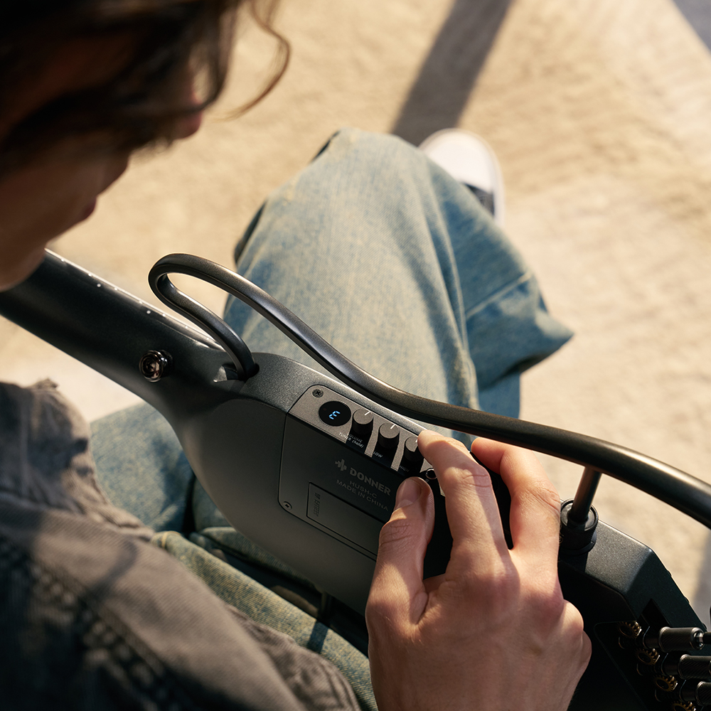 A HUSH™ C nylon húros elektromos gitár a kényelem, a hordozhatóság és a teljesítmény tökéletes ötvözete. Fej nélküli kialakításával, gyorskioldó keretével és beépített hangolójával zökkenőmentes, természetes hangzást biztosít a speciális piezo pickup és a DONNER HPS-II rendszernek köszönhetően. Akár otthon gyakorolsz, akár szabadtéren lépsz fel, a HUSH™ C könnyű, sokoldalú és könnyen szállítható. Ideális kezdőknek és haladóknak egyaránt, kivételes játékélményt és hangminőséget biztosít. Vidd magaddal a zenédet bárhová a HUSH™ C-vel!
