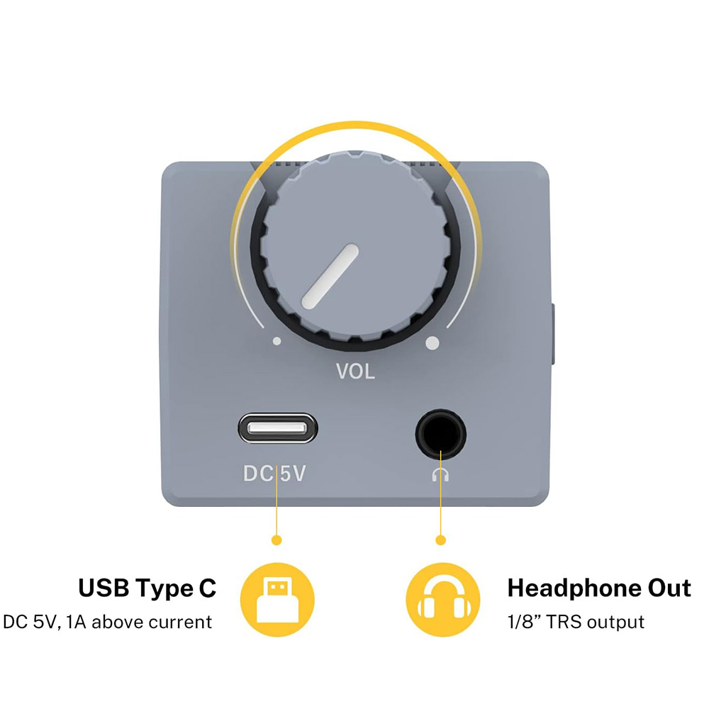 Erőteljes: A fejhallgató erősítő nagy erősítése a magas impedanciájú professzionális fejhallgatók esetében is biztosítja, hogy elég a hangerő a zajos környezetben. (Mikrofont nem támogat.)
