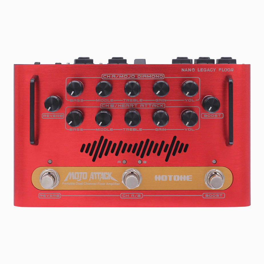 - B csatorna: Hotone Heart Attack, amit a legendás Mesa/Boogie® Rectifier® ihltetett - Magas minőségű hangzás, független hangerő, gain és háromsávos EQ szabályzással