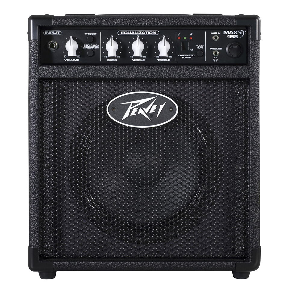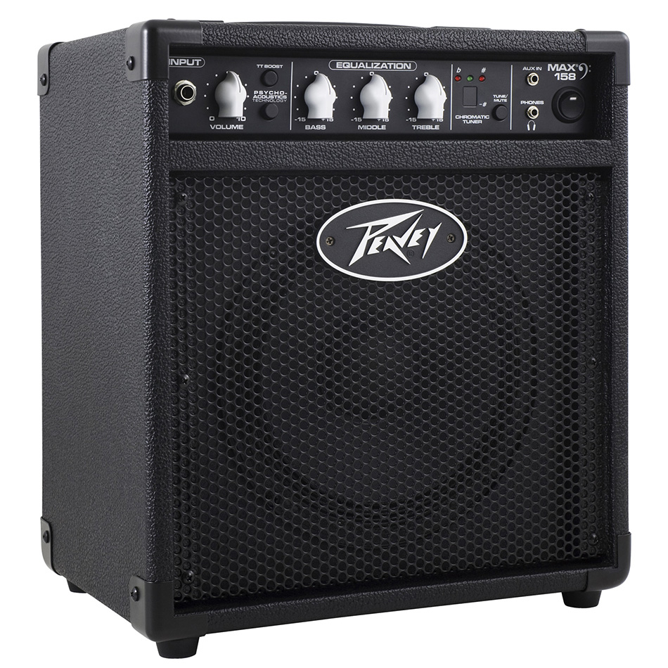 A MAX 158 basszuserősítő egy 20 W-os 1x8" (203 mm) gyakorló kombó olyan tulajdonságokkal, mint a 6,35 mm bemenet, hangerő szabályzás Transtube torzítás boosttal és pszicho-akusztikus mély hangzásjavítás. A MAX 158 ezen kívül háromsávos EQ-val, kromatikus hangolóval és 3,5 mm-es fejhallgató kimenettel és aux bemenettel rendelkezik. A Peavey szabadalmazott DDT technológiája védi a hangszórót.