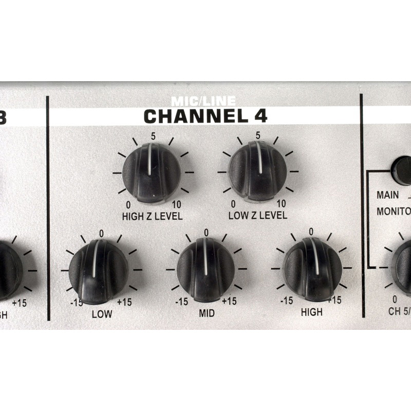 - stereo jack bemenet az első 3 csatornán, 2 sávos EQ