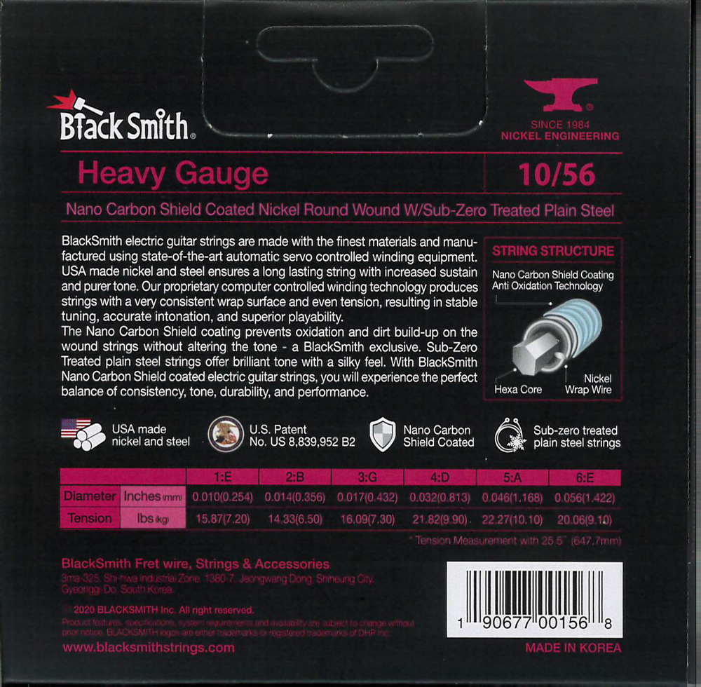 A BlackSmith elektromos gitár húrok a legkiválóbb alapanyagokból készülnek a legmodernebb tekercselő berendezés használatával. Az USA-ban gyártott nikkel és acél hosszú élettartamot és megnövelt hangkitartást biztosít. Számítógépvezérelt technológiával egyenletes tekercselést és húrnyomást kapunk, így a hangolás stabil, a hangzás pedig pontos lesz.