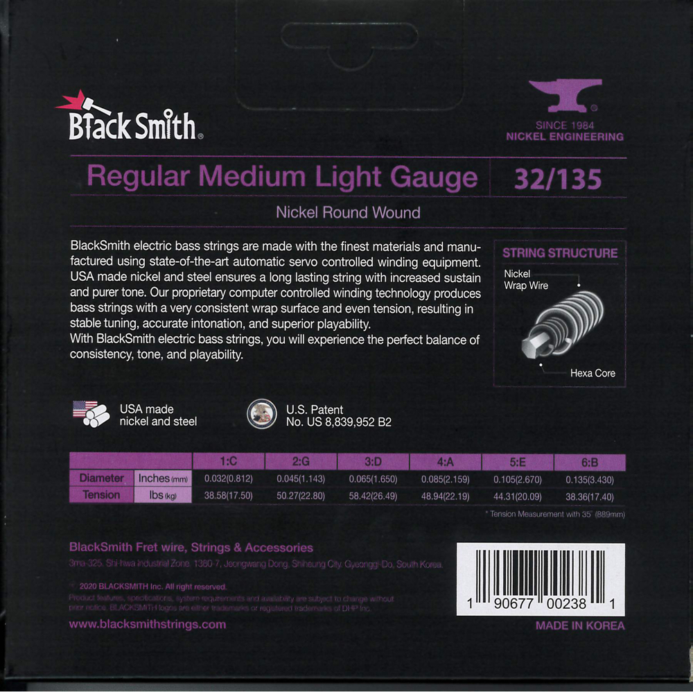 A BlackSmith elektromos basszus húrok a legkiválóbb alapanyagokból készülnek a legmodernebb tekercselő berendezés használatával. Az USA-ban gyártott nikkel és acél hosszú élettartamot és tisztább hangzást kölcsönöz, mint a hagyományos nikkel tekercselésű húr. Számítógépvezérelt technológiával egyenletes tekercselést és húrnyomást kapunk, ami stabil hangolást, pontos intonációt és kiváló játszhatóságot eredményez. Az egyedülálló, szabadalmazott vákuumzárású, csavarodásmentes csomagolásnak köszönhetően a húr nem rozsdásodik és nem sérül.