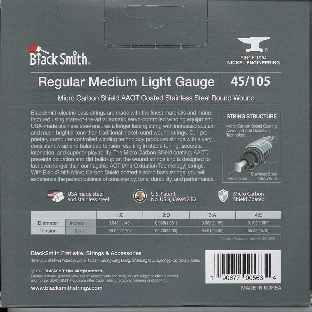 A BlackSmith elektromos basszus húrok a legkiválóbb alapanyagokból készülnek a legmodernebb tekercselő berendezés használatával. Az USA-ban gyártott rozsdamentes acél hosszabb élettartamot, jobb hangkitartást és tisztább hangzást kölcsönöz, mint a hagyományos nikkel tekercselésű húr. Számítógépvezérelt technológiával egyenletes tekercselést és húrnyomást kapunk, ami stabil hangolást, pontos intonációt és kiváló játszhatóságot eredményez.
