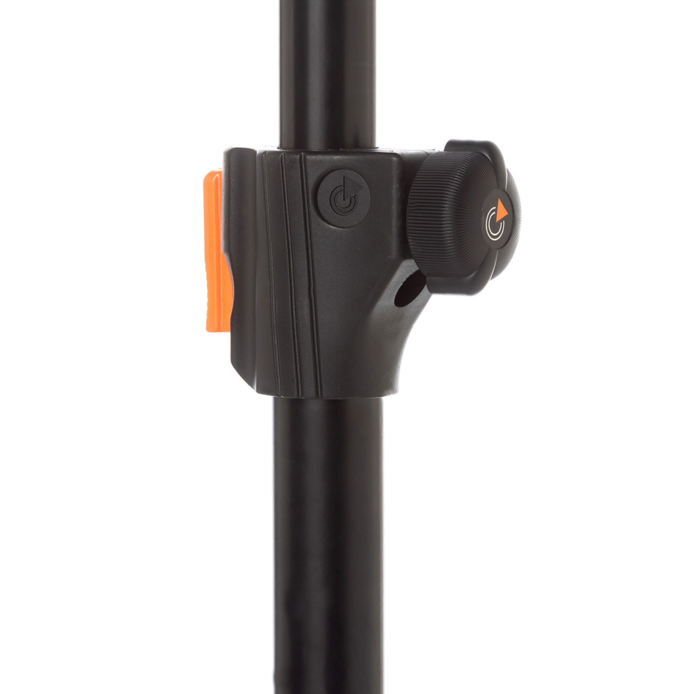 Kis nyomást igénylő, egygombos biztonsági és magasságállító rendszerrel ellátott, a végső állást egy gumiborítású tekerőgombbal rögzítjük.
