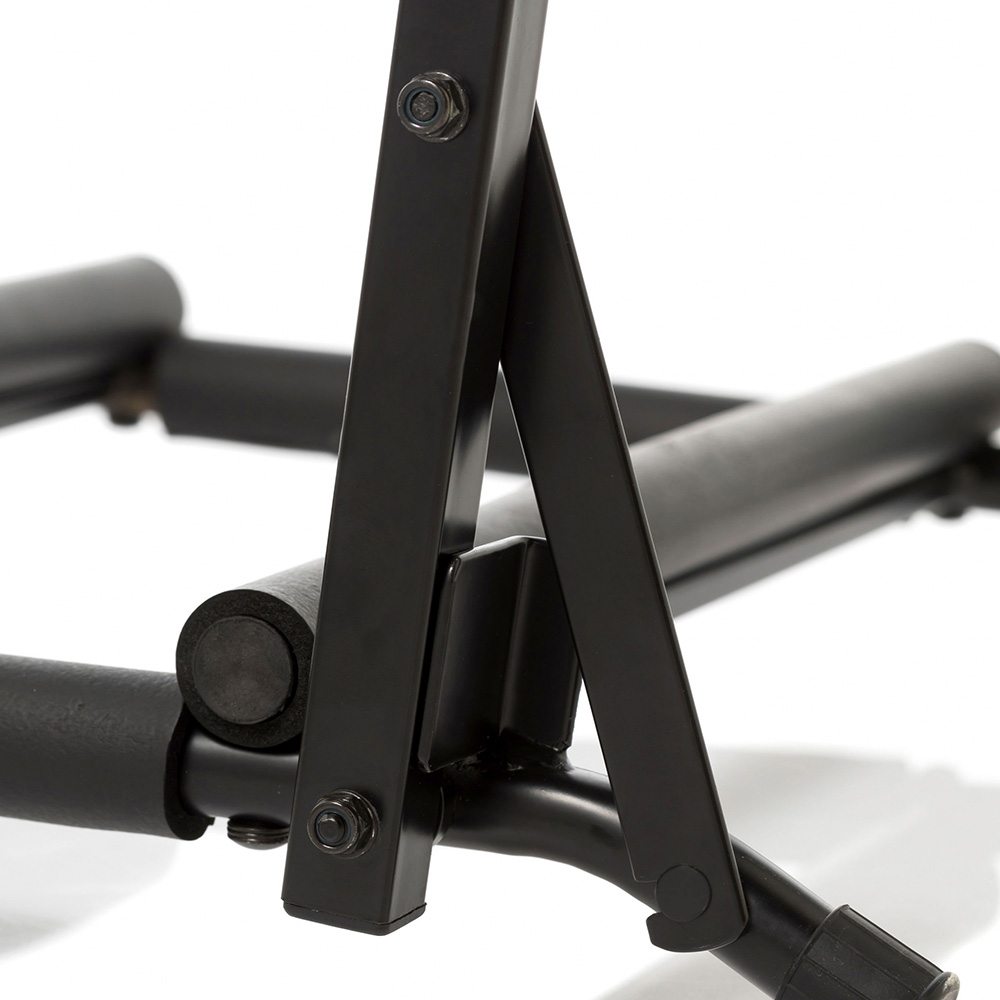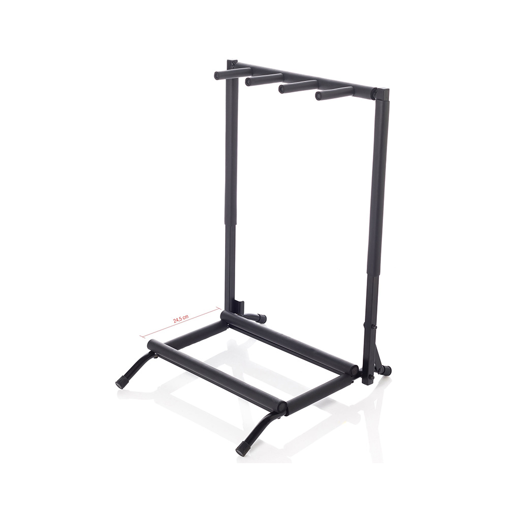 Összehajtható állvány 3 darab gitárhoz (elektromos, akusztikus). Minden hangszerrel érintkező felület gumival van borítva a hangszer védelme érdekében.