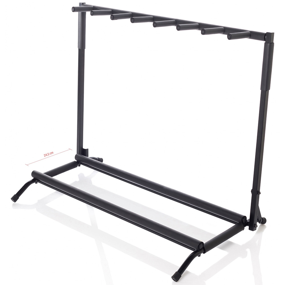 Állvány 7 darab gitárhoz (gitár, basszusgitár). Minden hangszerrel érintkező felület gumival van borítva a hangszerek védelme érdekében.