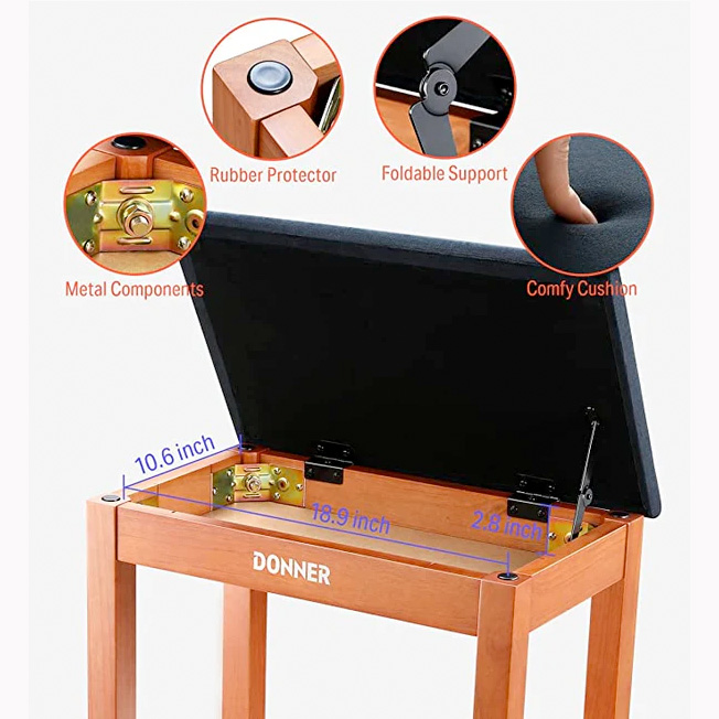 Ideális zongoraszék: A Donner zongoraszékben egy rejtett tároló található, ahol akár kottát vagy egyéb könyveket tárolhatunk. A felnyitható ülőrészt stabil támasztók tartják.