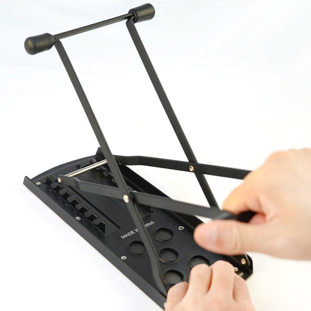 A GFR-01 egy összecsukható és hordozható gitárzsámoly. Ergonómikus, biztosítja a helyes testtartást. Csúszásgátló felülettel és állítható magassággal, a bihztonság és a pontosság érdekében.