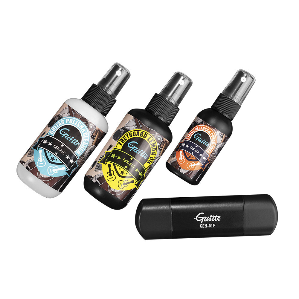 Miért van szüksége a hangszerének polírozásra? Rozsdás húrok, akadályozott ujjmozgás, fogólap repedések, por és szennyeződés. A Guitto GSN-01 Guitar Cleaning and Care Kit tisztán és kiváló állapotban tartja hangszereit, így hosszabb élettartamot és kiváló játszhatóságot biztosít szeretett hangszerei számára. Otthoni gyakorlás vagy élő koncertek, ez a legjobb ápoló a hangszereid számára.