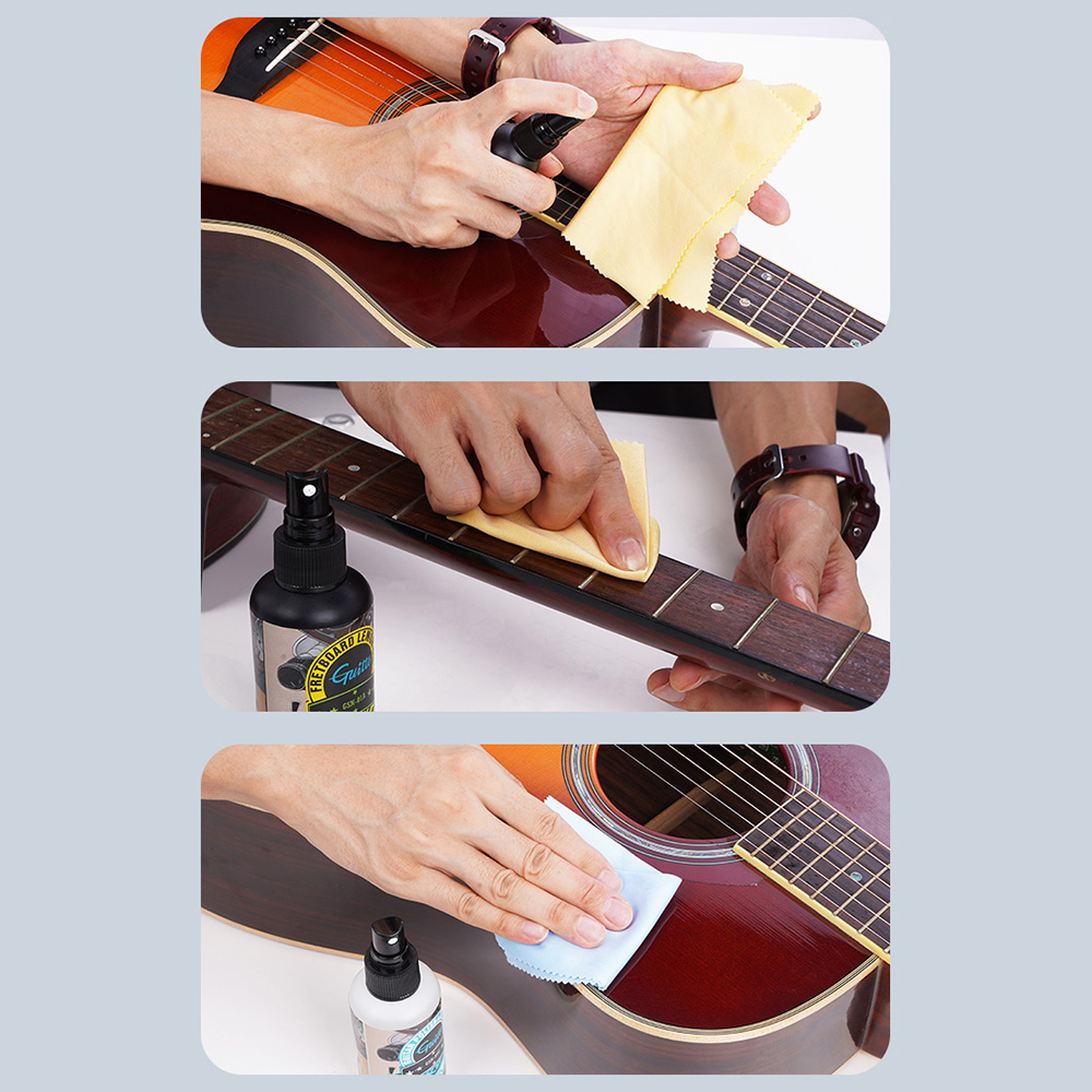 Jellemzők: Eltávolítja a szennyeződéseket, zsíros lerakódásokat, ujjlenyomatokat, védi a gitár felületét és visszaállítja a fényét. Emellett megakadályozhatja a repedéseket, biztosítva, hogy hangszerei megőrizzék eredeti megjelenésüket és textúrájukat.