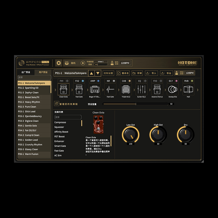 Válogatott effektek a lenyűgöző Ampero effektkönyvtárból, köztük:
