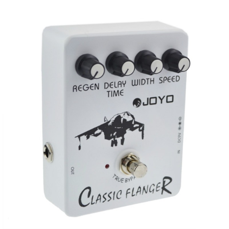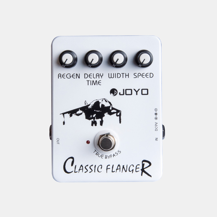 Klasszikus fémes, hullámzó Flanger, 4 állítható paraméterrel (Speed, Regain, Width, Delay Time).
