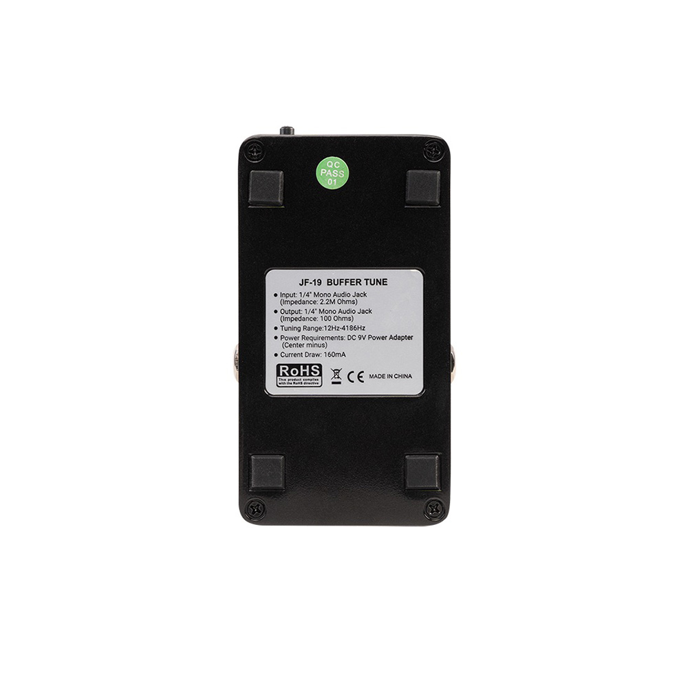 A JF-19 buffer és hangoló funkcióval is rendelkezik. A Buffer kiküszöböli a hosszú audio kábelek és a több pedál egymás után kapcsolása okozta jelveszteséget, miközben megőrzi a pedálok eredeti hangzását. Héthúros gitárokkal és basszusgitárokkal egyaránt használható köszönhetően a szupergyors reakciójának és magas precizitású hangoló algoritmusának (+/- 1% pontosság). A valós idejű LED kijelzőn akár a színpad sötétjében is tisztán látszanak az értékek. Választható True Bypass és True Buffer módok elérhetőek a választó kapcsolóval.