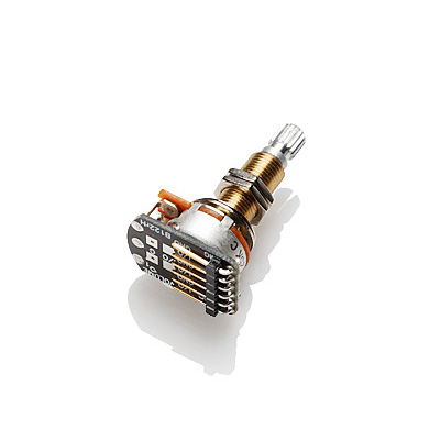 25k bevágott, hosszú tengelyű hangerő potenciométer, aktív hangszedőkhöz.