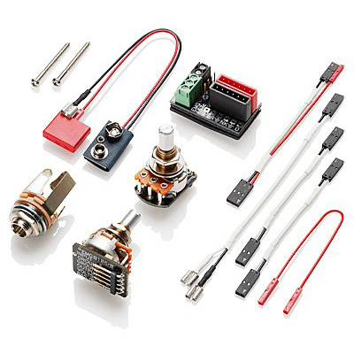 Tartozékok: EMG Quik-Connect kábel, csavarok és rugók, hangerő és hangszín potméter, 9V-os elem és jackdugó aljzat