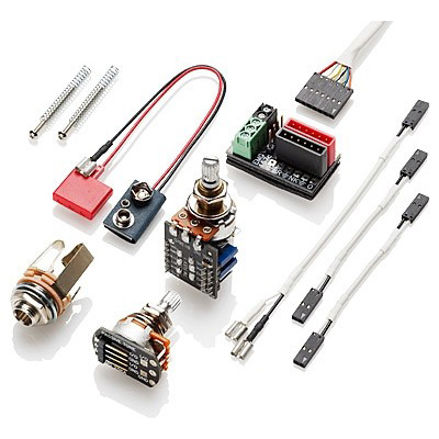Tartozékok: EMG Quik-Connect kábel, csavarok és rugók, push/pull rendszerű hangerő, hangszín potméter, 9V-os elem és jackdugó aljzat