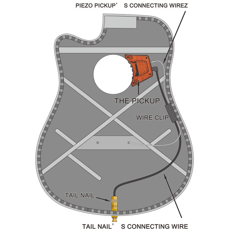 1. Nem szükséges lyukat fúrni a gitár testére, csak a hanglyuk szélére kell illeszteni.