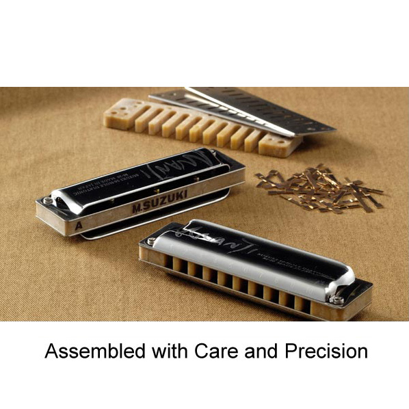 A Suzuki Manji egy forradalmian új, "kompozit" testtel készül, amellyel hangtónusa abszolút megegyezik a tradicionális fa testtel készült szájharmonikák hangtónusával, de nem lép reakcióba a nedvességgel. Óriási hangereje egyedülálló. Rendkívül precíz, könnyen kezelhető, professzionális, 10 hanglyukú, egysoros, diatonikus, dúr hangolású szájharmonika. Rendelhető hangnemek: C, D, F, G, A, Bb