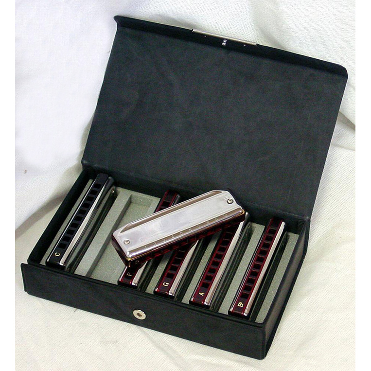 Professzionális, 10 hanglyukú, diatonikus szájharmonika haladóknak és profiknak egyaránt! Kiváló hangerő, hangtónus és könnyed kezelhetőség jellemzi. Egyedi, kényelmes kialakítású, lamellái foszfor-bronzból készülnek! 6 db-os szájharmonika készlet dobozban, C, G, A, D, F, Bb hangnemekben.