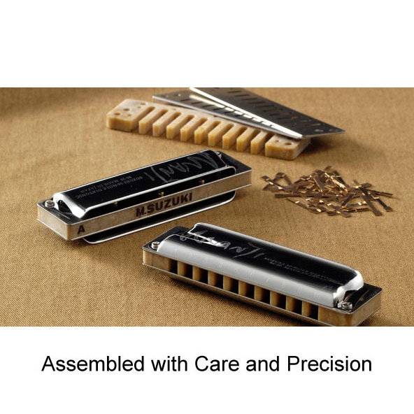 A Suzuki Manji egy forradalmian új, "kompozit" testtel készül, amellyel hangtónusa abszolút megegyezik a tradicionális fa testtel készült szájharmonikák hangtónusával, de nem lép reakcióba a nedvességgel. Óriási hangereje egyedülálló. Rendkívül precíz, könnyen kezelhető, professzionális, 10 hanglyukú, egysoros, diatonikus, dúr-hangolású szájharmonika.